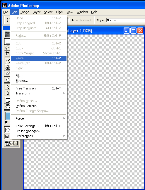 Now paste in the image from the clipboard by selecting Edit, Paste.